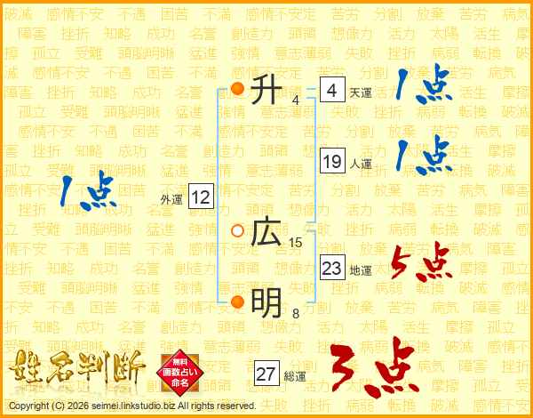 升(4画) 広(15画)明(8画)