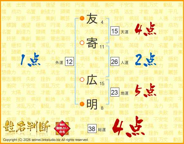 友寄広明さんの総運は38画の4点!