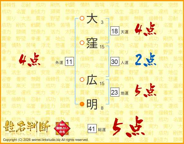 大窪広明さんの総運は41画の5点!