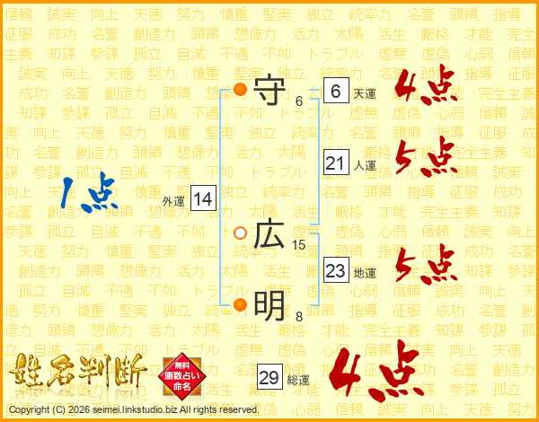 守広明さんの総運は29画の4点!