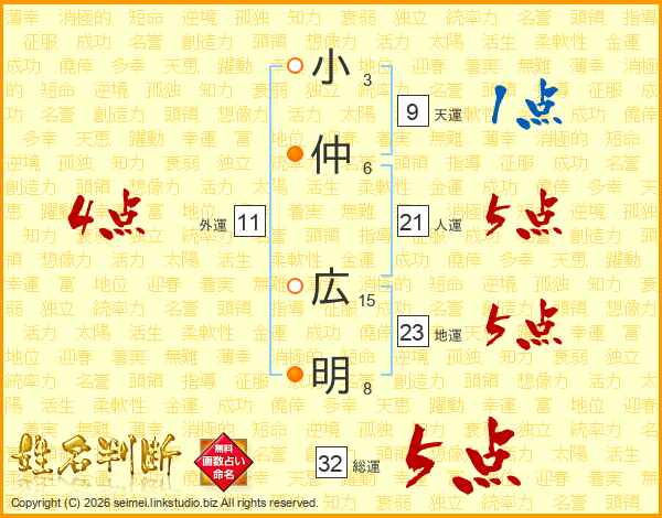 小仲広明さんの総運は32画の5点!