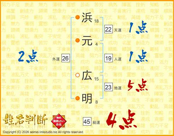 浜元広明さんの総運は45画の4点!