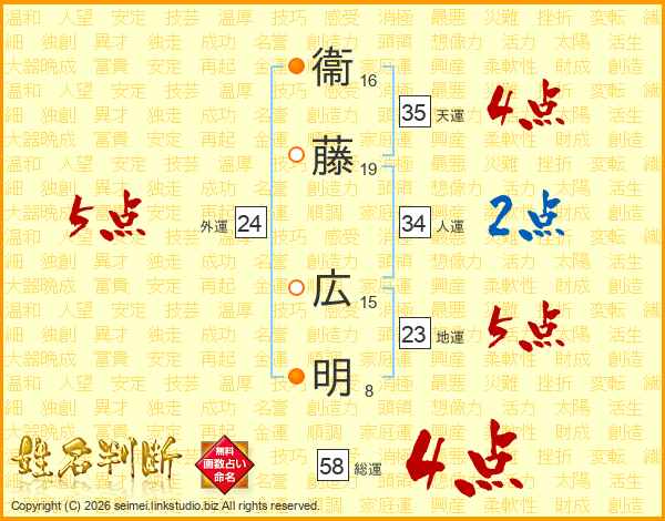 衞藤広明さんの総運は58画の4点!