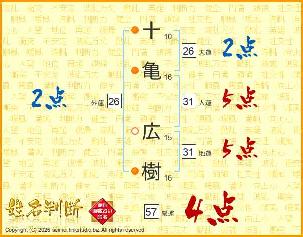十亀広樹さんの地運は31画の5点!