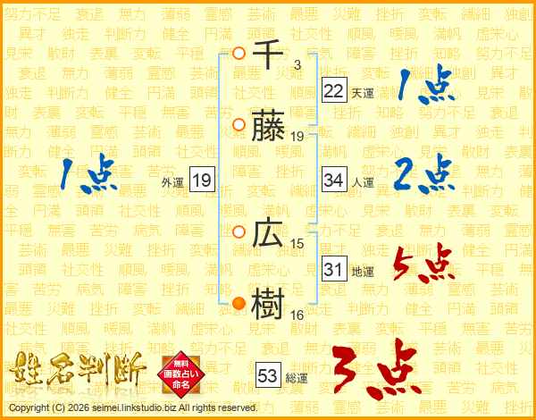 千藤広樹さんの総運は53画の3点!