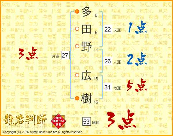 多田野広樹さんの総運は53画の3点!