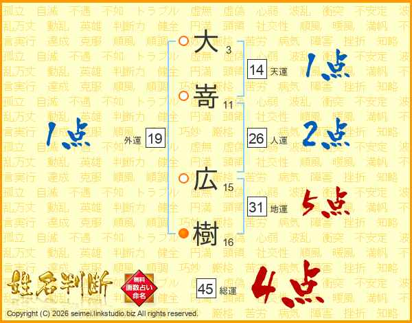 大嵜広樹さんの総運は45画の4点!