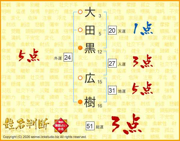 大田黒広樹さんの総運は51画の3点!