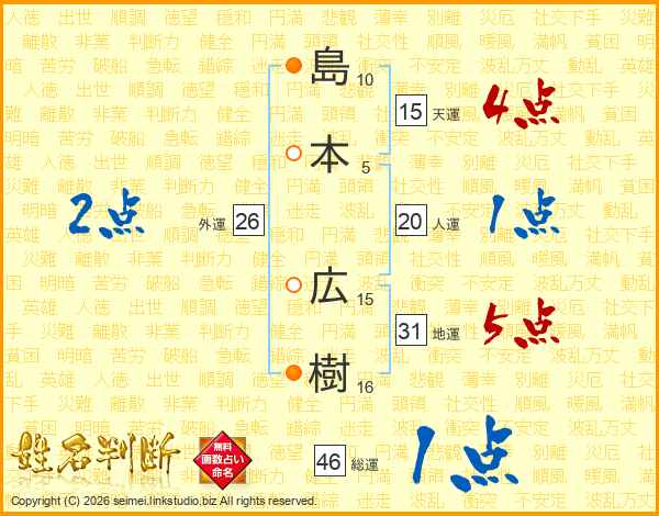 島本広樹さんの総運は46画の1点!