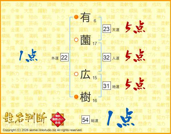 有薗広樹さんの総運は54画の1点!