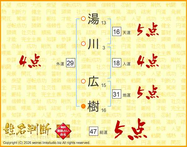 湯川広樹さんの総運は47画の5点!