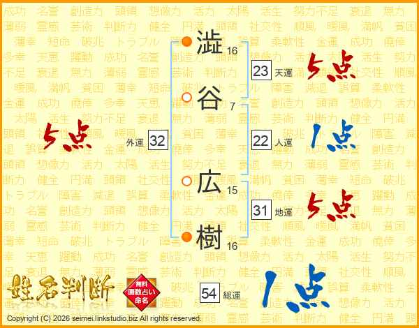 澁谷広樹さんの総運は54画の1点!