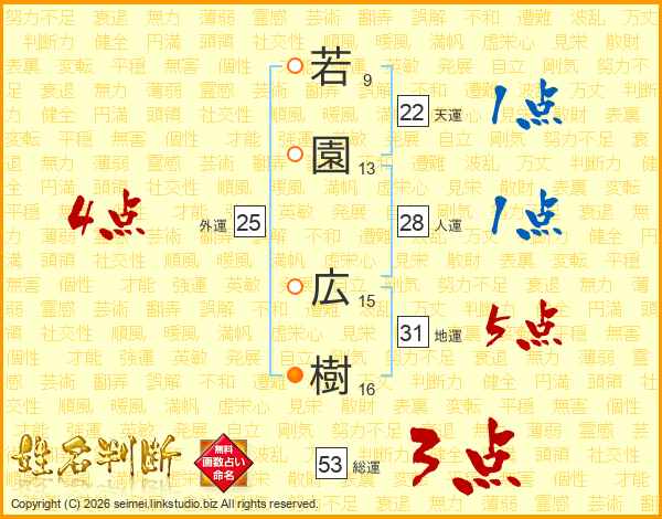 若園広樹さんの総運は53画の3点!