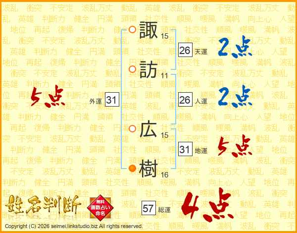 諏訪広樹さんの総運は57画の4点!