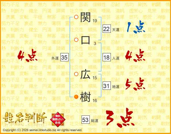関口広樹さんの地運は31画の5点!