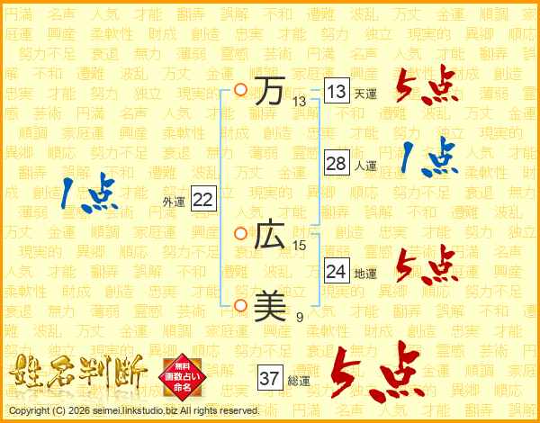 万(13画) 広(15画)美(9画)