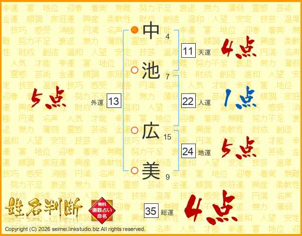 中池広美さんの総運は35画の4点!
