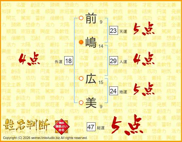 前嶋広美さんの総運は47画の5点!