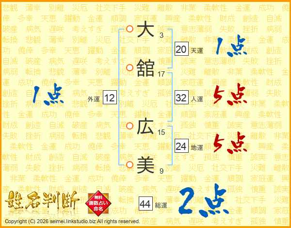 大舘広美さんの総運は44画の2点!