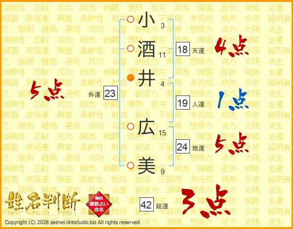 小酒井広美さんの外運は23画の5点!