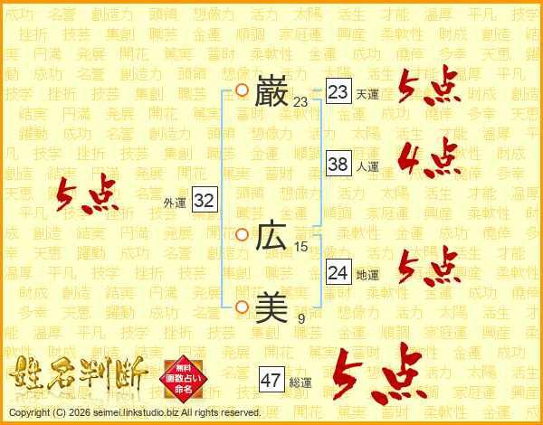 金運 順調 家庭運 興産 柔軟性 財成 創造