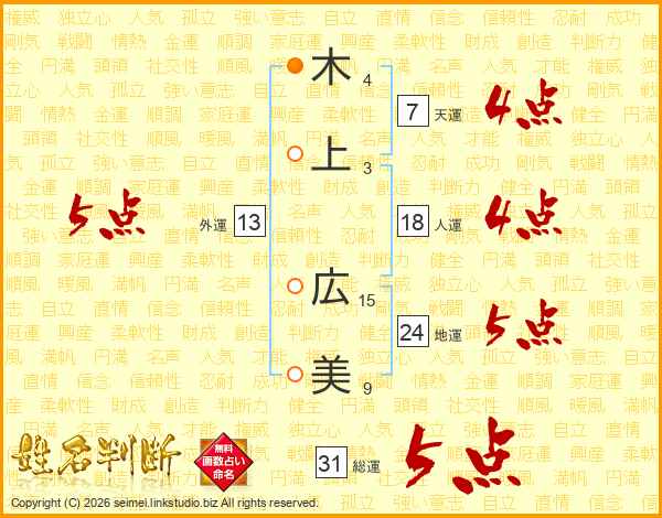 木上広美さんの総運は31画の5点!