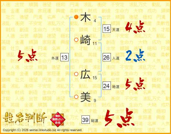 木崎広美さんの総運は39画の5点!
