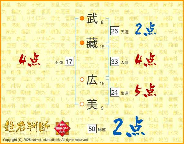 武藏広美さんの総運は50画の2点!