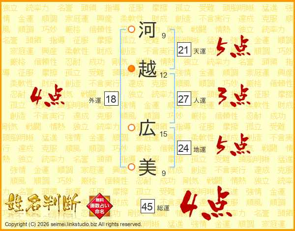 河越広美さんの総運は45画の4点!