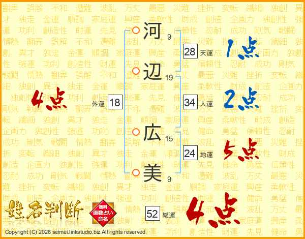 企画力 独創性 強運 功利 創造性 財運 先見 健命 勇猛