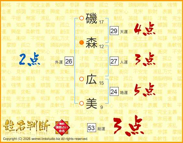 磯森広美さんの総運は53画の3点!