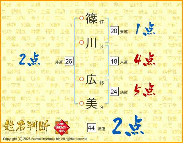 篠川広美さんの総運は44画の2点!