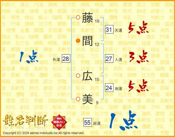 藤間広美さんの総運は55画の1点!