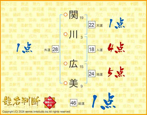 関川広美さんの人運は18画の4点!