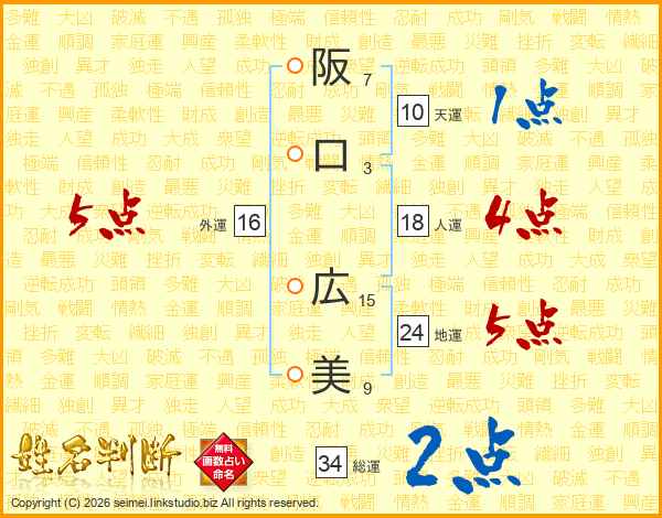 阪口広美さんの人運は18画の4点!