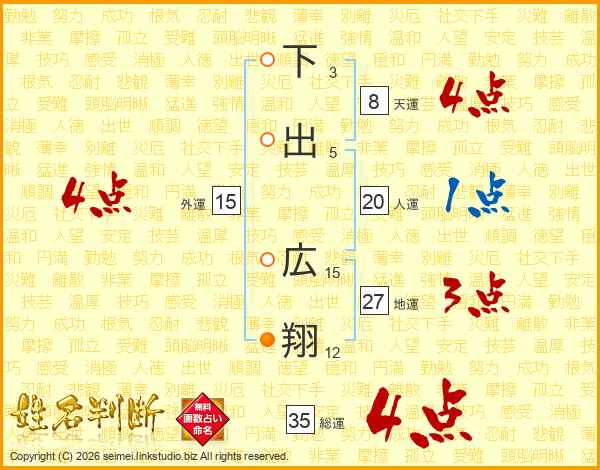 下出広翔さんの総運は35画の4点!