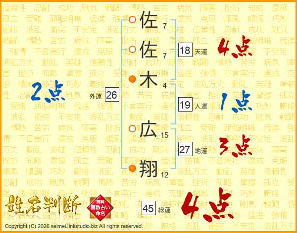 佐佐木広翔さんの総運は45画の4点!