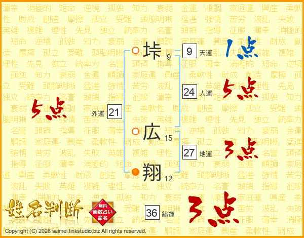 垰広翔さんの総運は36画の3点!