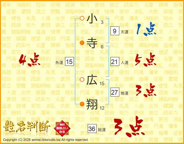 小寺広翔さんの総運は36画の3点!
