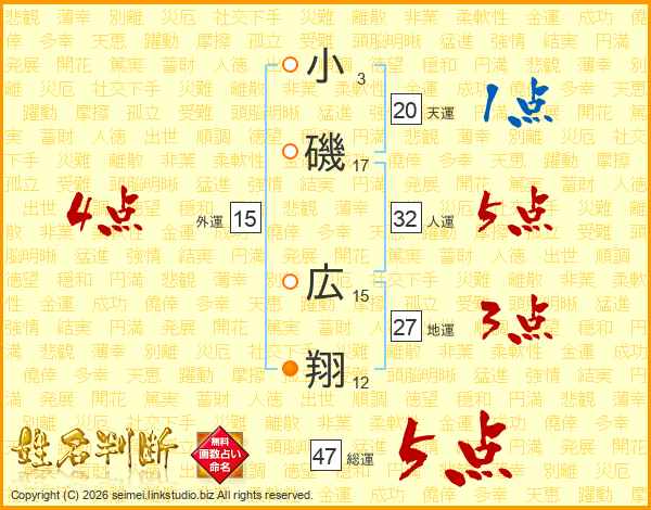 小磯広翔さんの総運は47画の5点!