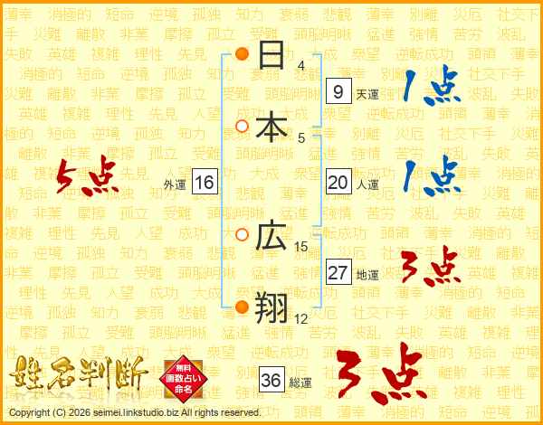 日本広翔さんの総運は36画の3点!