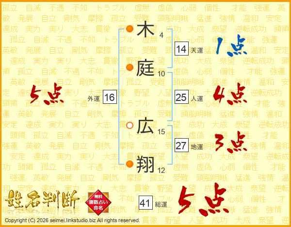 木庭広翔さんの総運は41画の5点!