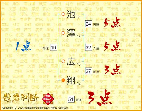 池澤広翔さんの総運は51画の3点!