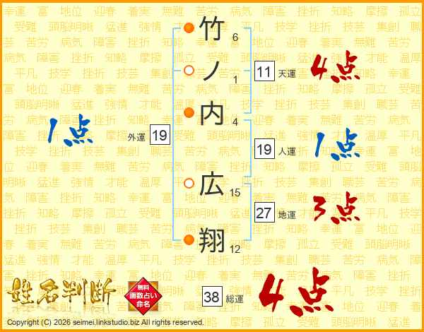 竹ノ内広翔さんの総運は38画の4点!