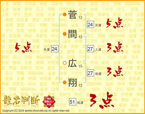 菅間広翔さんの総運は51画の3点!