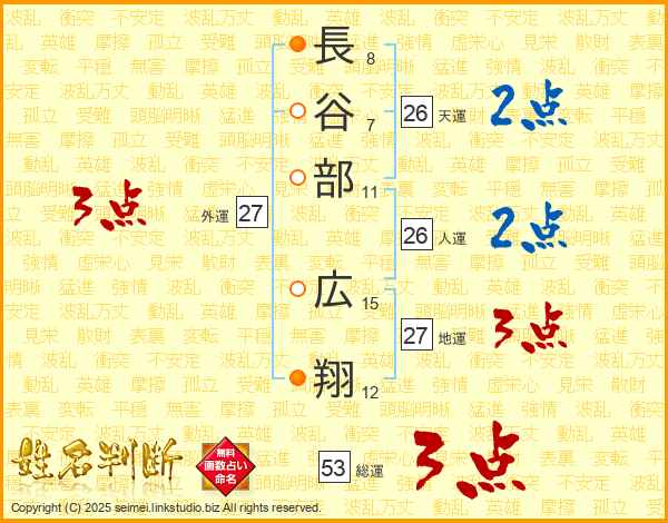 長(8画)谷(7画)部(11画) 広(15画)翔(12画)