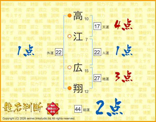 高江広翔さんの総運は44画の2点!