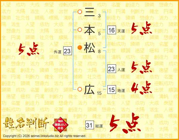 三本松広さんの総運は31画の5点!