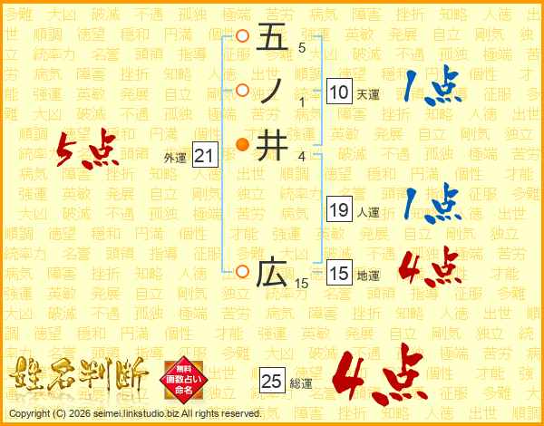 五ノ井広さんの外運は21画の5点!