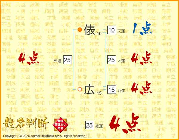 俵広さんの総運は25画の4点!